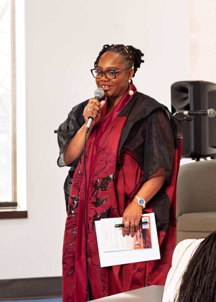 One of the most powerful moments of the evening came during Rufina Ajalie’s reading and remarks. Speaking not as an author seeking acclaim, but as a fellow traveler through loss, she offered words that lingered long after the applause: