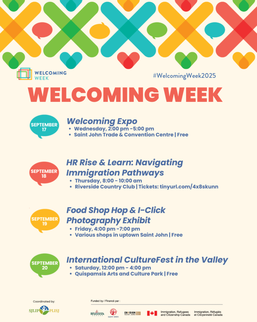 Welcoming Week invites everyone, newcomers, residents, organizations, and businesses to participate in storytelling and cultural events that celebrate heritage and build community connections. Whether looking to learn, contribute, or hire talent, there are meaningful ways to engage and support Saint John’s welcoming vision.
